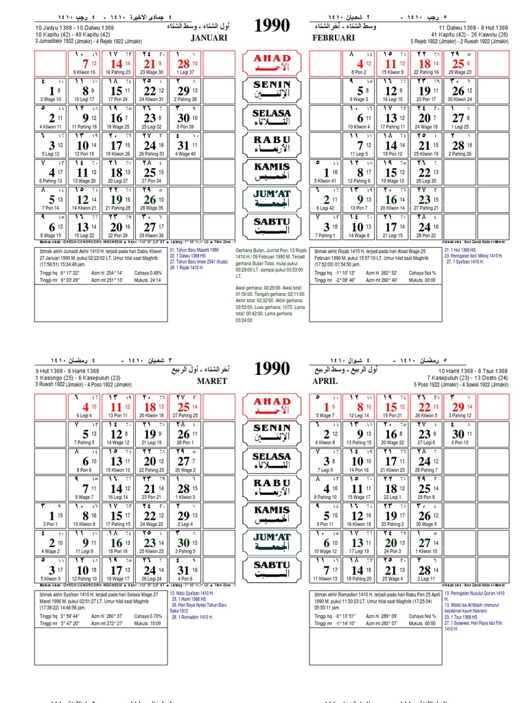 Kalender jawa januari 1990. 27 Rajab 1410 H. Awal bulan Januari 1990 Masehi bertepatan dengan tanggal 3 Jumadil Akhir 1410 Hijriyah 4 Jumadil Akir 1922 Jawa 12k Setra 1925 Candra dan 11 Kasa 1912 Surya. Kalender januari 1990 Author.