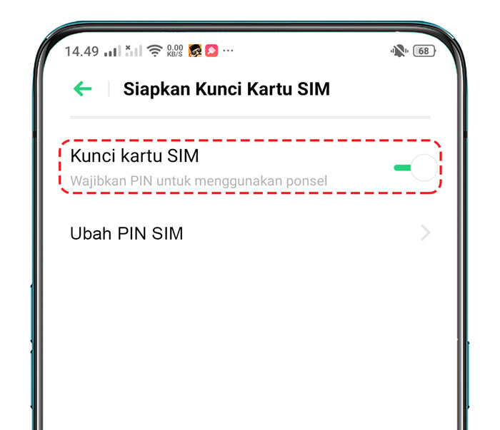 Di layar berikutnya masuk geser toggle untuk mengaktifkan penguncian kartu SIM Anda. Guide to lock a SIM card on Android.